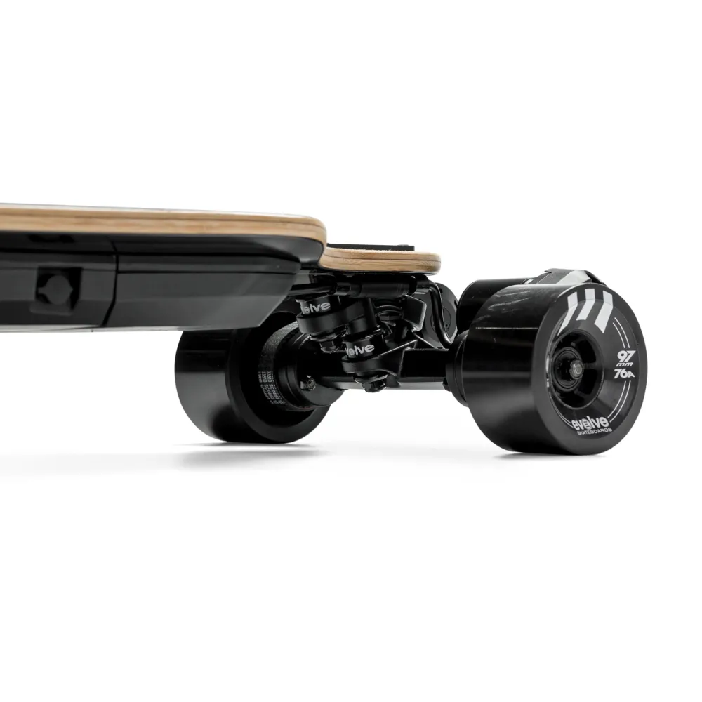 Модель управляется с помощью дистанционного пульта Evolve Bamboo GTR, имеющего 4 скоростных режима. Для расслабленной и безопасной езды производитель предлагает выбрать режим «Эко», для получения экстрима – «PRO».