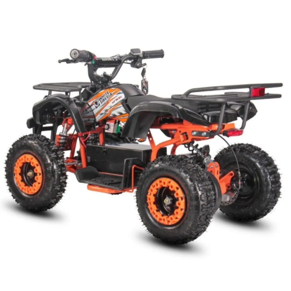 Параметры электроквадроцикла считаются лучшими для обучения. Производителя обещает получение массы положительных эмоций, экстрим и выброс адреналина. Пользование преимуществами модели доставит наслаждение, позволит уважать других участников дорожного движения, быть внимательным на дороге. Максимальная скорость достигается быстро до 25 км/час.