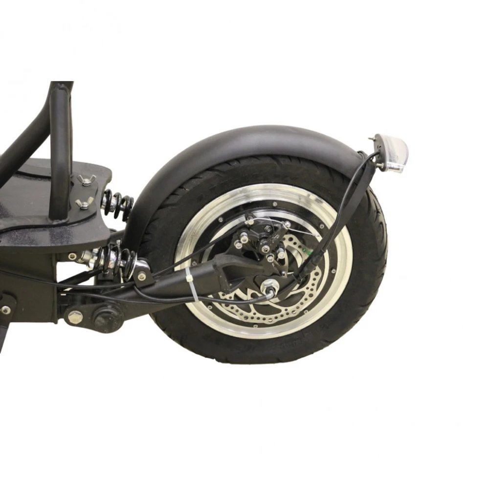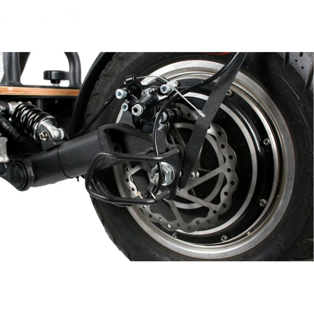 Высокие тяговые качества техники обеспечиваются движком с номинальной мощностью 1200 Вт типа мотор-колесо. Питание на мотор поступает от свинцово-гелевого аккумулятора с напряжением 48 В. При таких характеристиках разогнаться до максимальной скорости 35 км/час не составит труда. Стальная рама свободно выдерживает пользователей массой до 120 кг. Складная конструкция изделия порадует капризных пользователей. Шоссейные 14 дюймовые колеса и дорожный просвет 16 см рассчитаны на преодоление дорожных препятствий. Полного заряда АКБ за короткие 4 часа хватит на преодоление 30 км пути. Тормозная система, состоящая из дисковых передних и задних тормозов, работает слаженно и безотказно. Телескопическая вилка на амортизаторах идеально смягчает наезд на ямы и кочки. Удобное седло имеет правильную анатомическую форму. Для быстрого оформления заказа предлагаем связаться с нашим менеджером.