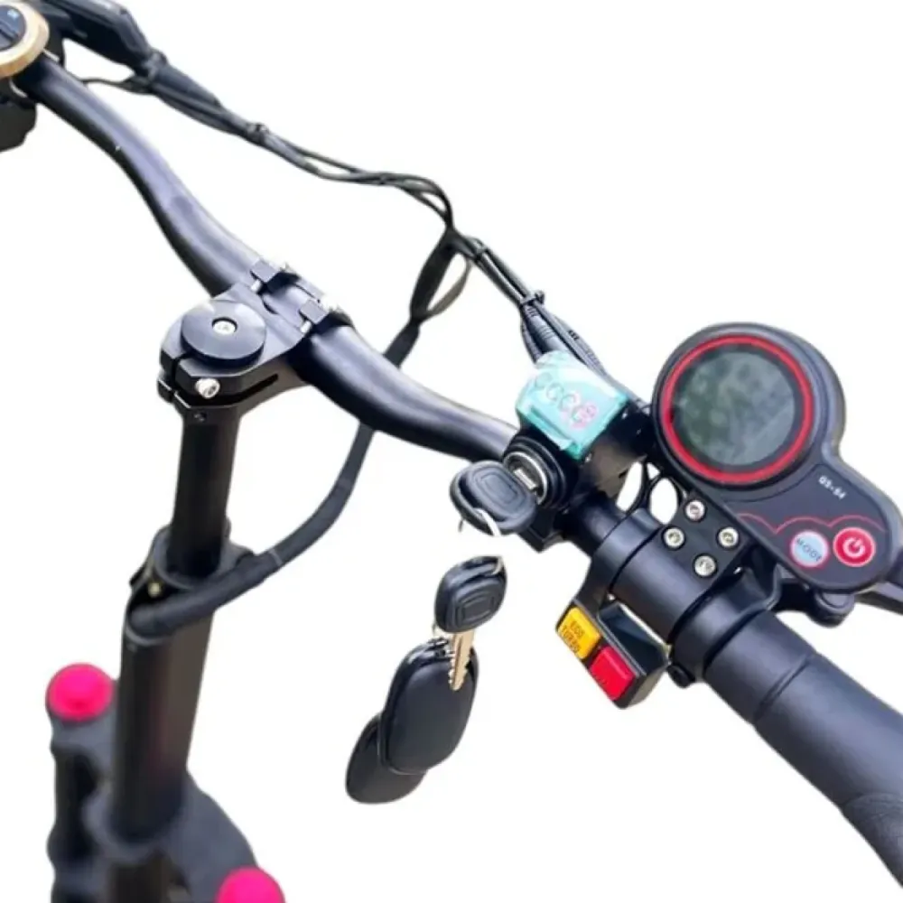 Алюминиевая рама авиационного сплава прочна и легка; складывается компактно (габариты ~130x60x50 см), руль регулируется. Дисплей показывает скорость, пробег, заряд, режимы, круиз-контроль; Bluetooth/приложение возможны для тюнинга.