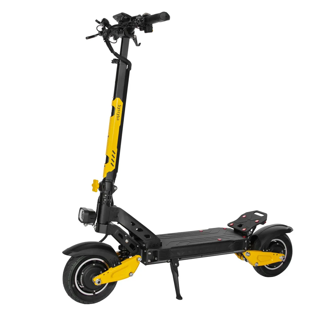 Электросамокат Syccyba M10 Flash Dual предлагает полноприводную систему мощностью 2400 Вт, запас хода до 70 км и скорость до 70 км/ч при весе всего 29 кг, что делает его оптимальным выбором для городских поездок и легкого бездорожья.​​