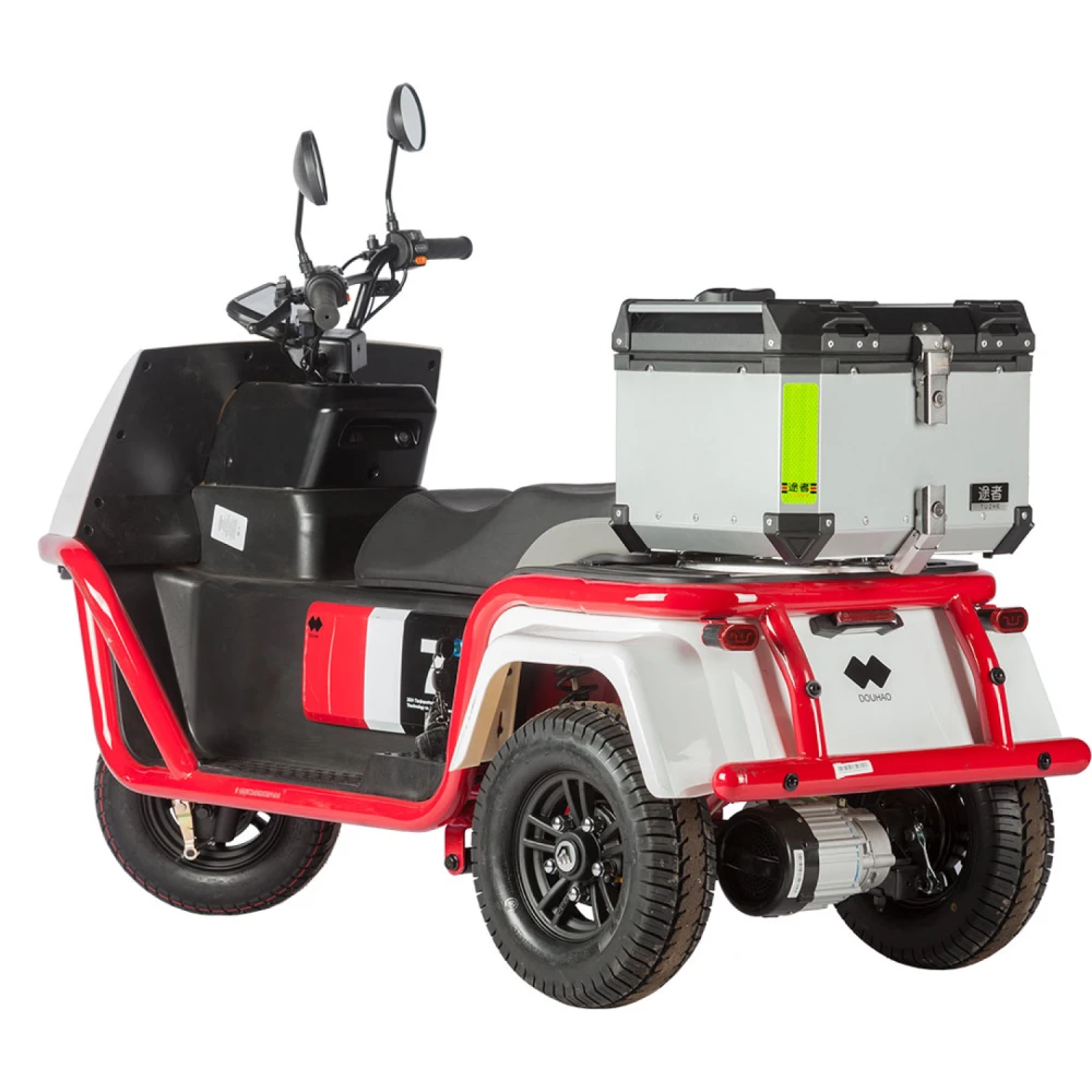 Электротрицикл Wanshida DOUHAO 60V 800Вт – это современное и стильное средство передвижения, созданное для комфортных и безопасных поездок в городских условиях. Модель выполнена в динамичном сочетании черного, белого и красного цветов, что придает ей выразительный и запоминающийся внешний вид.Сердцем данного трицикла является двигатель мощностью 800 W, работающий на аккумуляторе с напряжением 60 V, что обеспечивает стабильное и уверенное движение благодаря заднему приводу. Передние и задние барабанные тормоза гарантируют надежное торможение даже при резких маневрах, повышая безопасность пользователя в условиях плотного городского трафика.Конструкция трицикла отличается прочностью и сбалансированностью: при весе всего 110,6 кг он способен выдерживать максимальную нагрузку до 190 кг, что делает его универсальным решением для разных категорий пользователей. Габариты в собранном состоянии – 120×58×63 см – обеспечивают компактность и удобство при хранении, а 10-дюймовые колеса способствуют стабильной и маневренной езде по разнообразным дорожным покрытиям.Дополнительное оснащение, включая багажник, позволяет легко перевозить необходимые вещи, что делает модель практичным выбором для повседневного использования. Wanshida DOUHAO сочетает в себе современный дизайн, надежные технические решения и высокую функциональность, обеспечивая комфортное и уверенное передвижение в любых условиях.