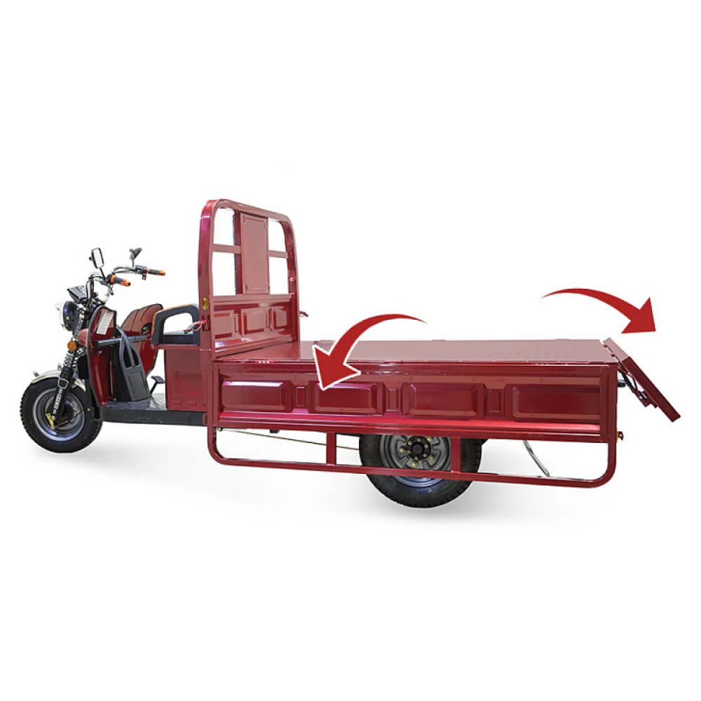 Мощность двигателя составляет 1500 Вт, в сочетании с гелевой тяговой батареей модель способна развивать скорость до 25 км/час и преодолевать 80 км пути. С такими характеристиками работать на приусадебном участке, в складском помещении или другой территории можно целый день. Модель оснащена вместительным кузовом, рассчитанным на грузоподъемность 1т.