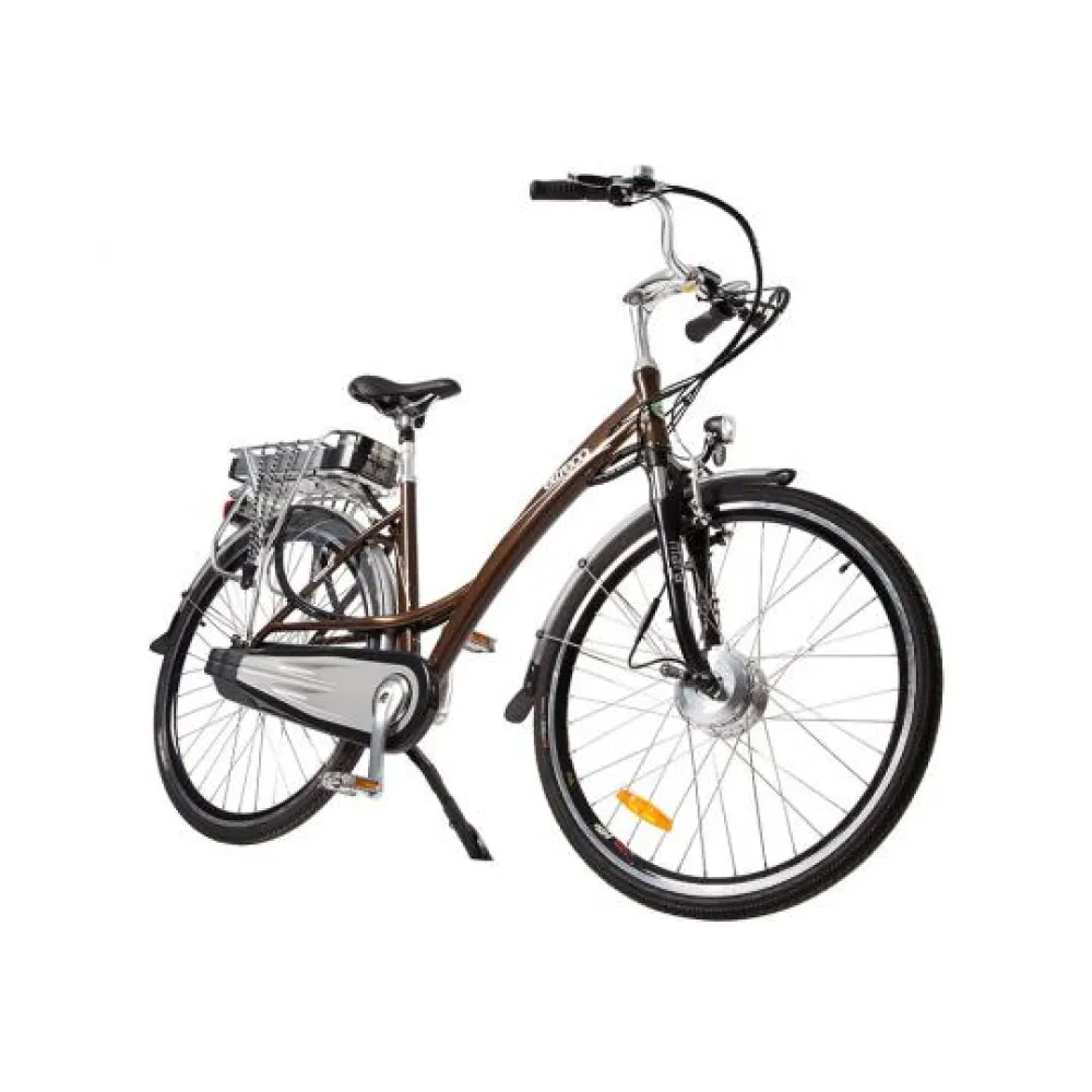 Электровелосипед Eltreco Grand 700 C оснащен литий-ионным аккумулятором, емкостью 10 А*ч, он легко снимается, пополнить заряд батареи можно за 6 часов, подключив ее к сети через зарядное устройство. Полного заряда батареи хватает на 70 км пути. Агрегат оборудован мотор-колесом мощностью 250 Вт, редукторный двигатель придает ровное ускорение и имеет экономное энергопотребление. Максимальная скорость, развиваемая транспортным средством, составляет 30 км/ч.