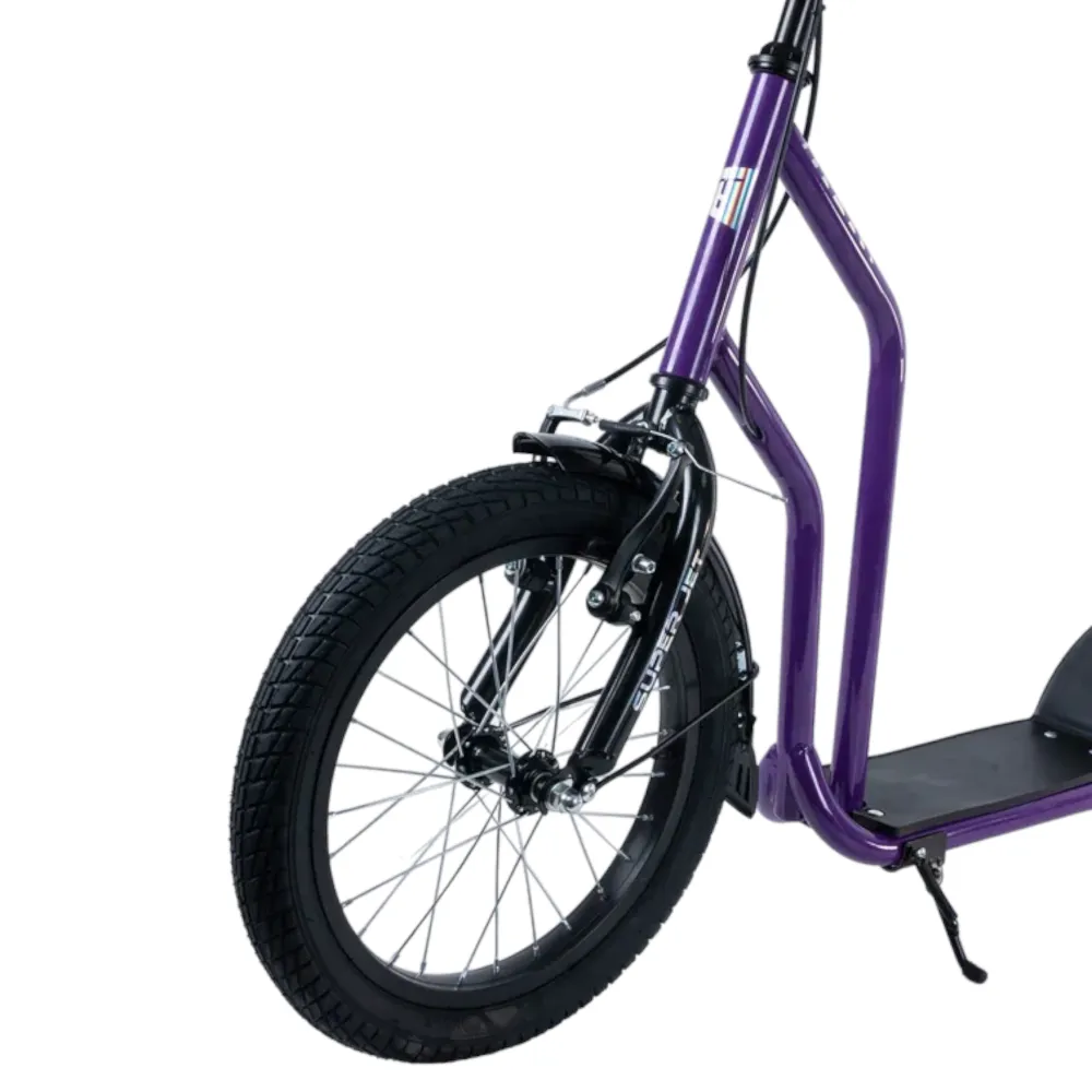 Tech Team Super Jet 700 2024 года в фиолетовом цвете - это стильный и функциональный городской самокат. Его необычный дизайн напоминает велосипед, что делает его выделяющимся среди других моделей. Спереди установлено большое колесо диаметром 406 мм, а сзади - 305 мм, что обеспечивает отличную устойчивость и маневренность. Ободные тормоза и велосипедный руль с двумя ручками тормоза гарантируют надежное управление и безопасность. Максимальная нагрузка до 100 кг и легкая алюминиевая рама весом 8,1 кг делают этот самокат идеальным выбором для ежедневных поездок по городу.