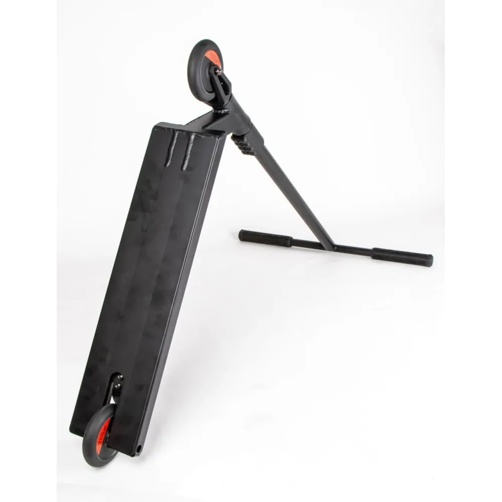 Модель относится к категории подростковой и выше. Рассчитана на рост от 175 см. Имеет небольшой вес. При необходимости может быть транспортирована ручным или другим способом. Оснащена нестираемыми полиуретановыми колесами диаметром и подшипниками ABEC 9 Chrome. Рулевая часть – «T»-образная, выполнена из хромолевой стали (CrMo), регулируется под рост ездока. Материал изготовления стойкий к механическому воздействию, не теряет первоначальных характеристик при экстремальной эксплуатации.