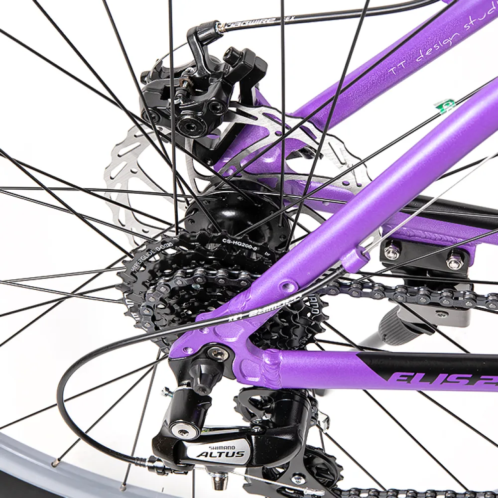Велосипед Tech Team ELIS 27.5 в фиолетовом цвете с 18-дюймовой стальной рамой рассчитан на подростков и женщин с параметрами роста 165-180 см. Плавный изгиб стальной рамы удобный, комфортный для длительных прогулок на свежем воздухе в пределах города, а также на лесных тропинках. Купить технику по лучшей цене, на личной опыте убедиться в комфорте передвижения предлагает наш интернет-магазин.
